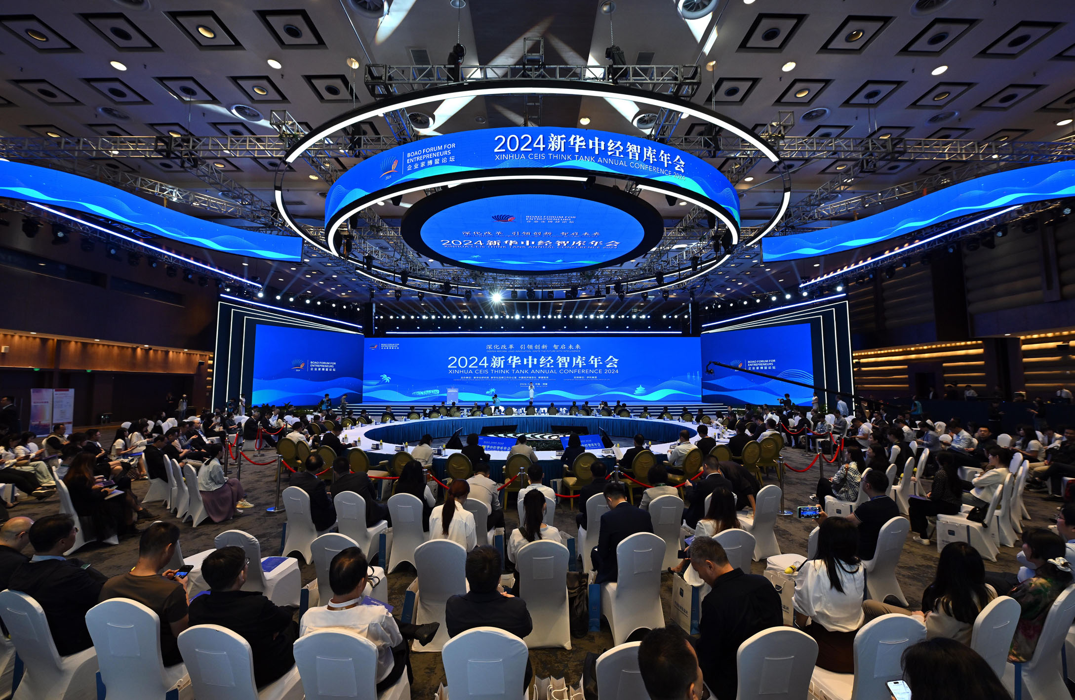 2024年12月4日拍摄的2024新华中经智库年会现场。当日,新华社国家高端智库在海南博鳌举行的2024新华中经智库年会上发布《中国游:让世界认识更加真实的中国》智库报告。