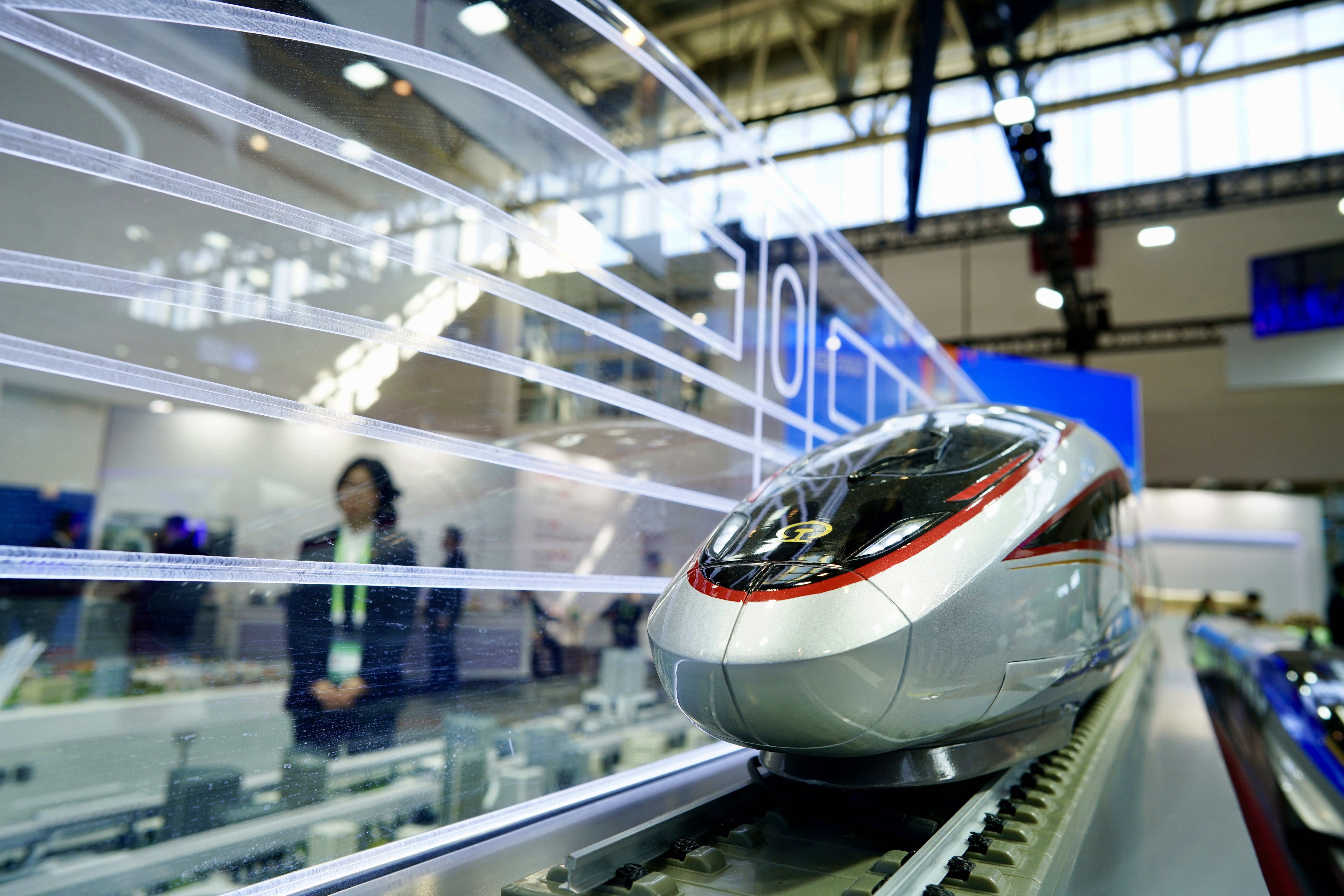 图为近日在第二届中国国际供应链促进博览会先进制造链展区中国中车展台拍摄的“CR400BF-Z复兴号智能动车组”模型。新华社发(那宇奇 摄)