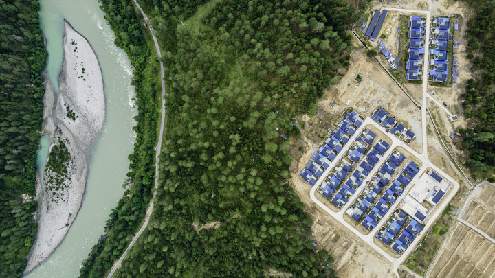 这是无人机拍摄的西藏林芝市察隅县上察隅镇岗藏村。岗藏村易地搬迁项目建设总投资5018.06万元,其中深圳市援藏资金投入4800万元(2022年5月29日摄)。新华社记者 周荻潇 摄