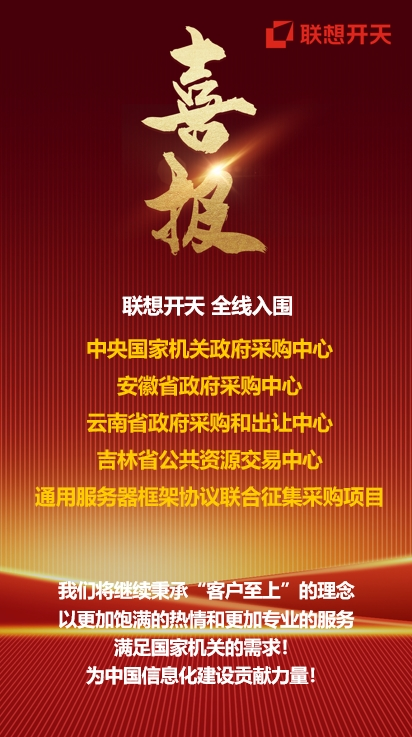 得益于领先的技术、出色的性能以及完善的产品矩阵,联想开天还全线入围了安徽省政府采购中心、云南省政府采购和出让中心、吉林省公共资源交易中心(吉林省政府采购中心)通用服务器框架协议联合征集采购项目,入围金额和数量名列前茅。2024年,联想开天连续中标中国移动、中国电信、中国联通服务器集采项目,斩获超亿元采购大单,在海关总署、四川地震局等政府机关信息化项目中表现出强劲实力,为政府和央国企信息安全和自主可控提供了有力保障。