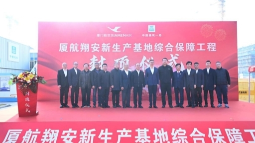 1月15日,由中建一局承建的厦航翔安新生产基地综合保障工程A地块项目顺利举行主体结构封顶仪式。厦门市机场片区指挥部常驻副总指挥叶文语、厦门航空有限公司副总经理黄宇峰、福建兆翔机场建设有限公司总经理叶青等相关领导出席仪式。天津华汇工程建设设计有限公司、福州诺成工程项目管理有限公司相关负责人,中建一局华南分局相关负责人,华江公司相关人员参加仪式。