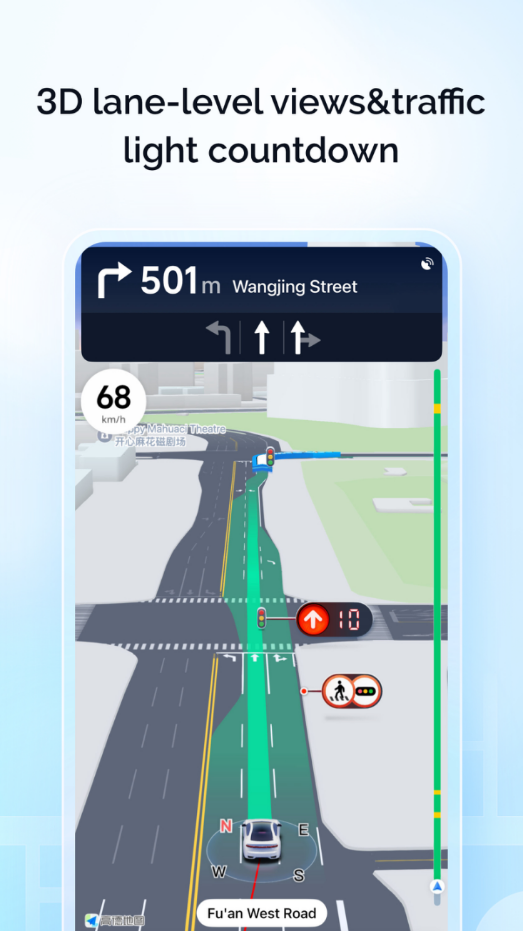 值得一提的是,高德地图全球领先的基础服务能力,也和英文版无缝衔接,车道级导航、红路灯倒数等功能帮助外国友人轻松应对中国的复杂路况,为外国游客提供全方位的安全服务保障。