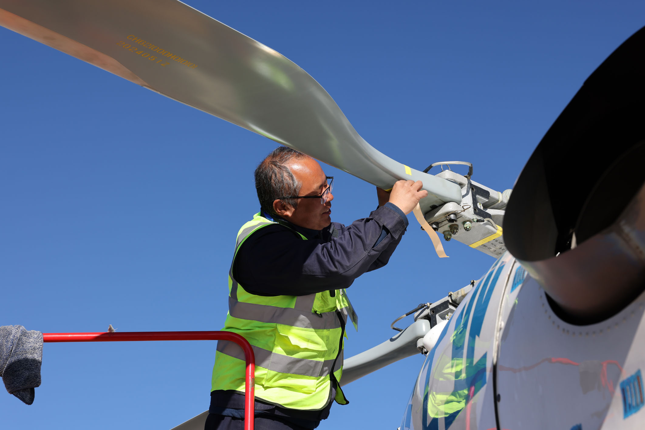“看着它每次顺利起飞,平安回来,就有成就感。”中航工业哈飞外勤机械师王钊是在每次起飞前确认周围环境安全并给出放飞指令的人,“80后”的他也是最后从直升机前方撤离的人。