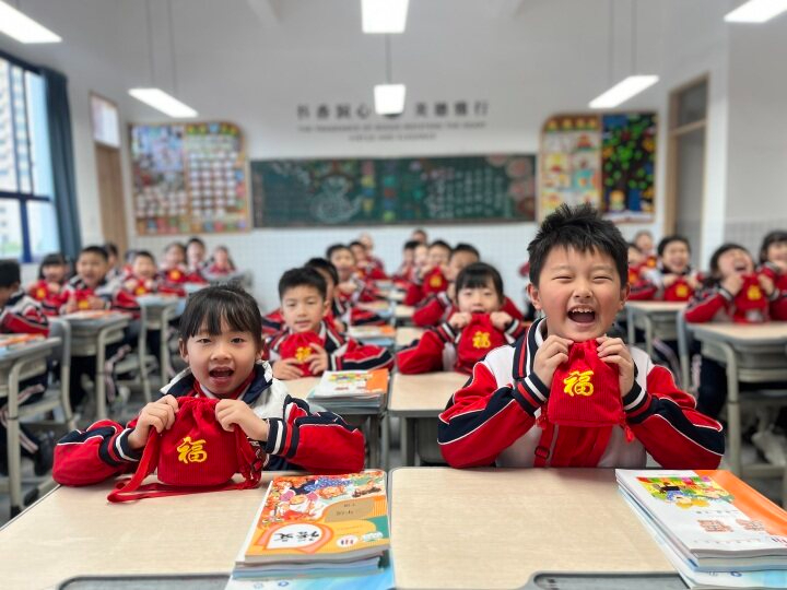 仲恺文汇实验学校的同学们收到福袋喜笑颜开。