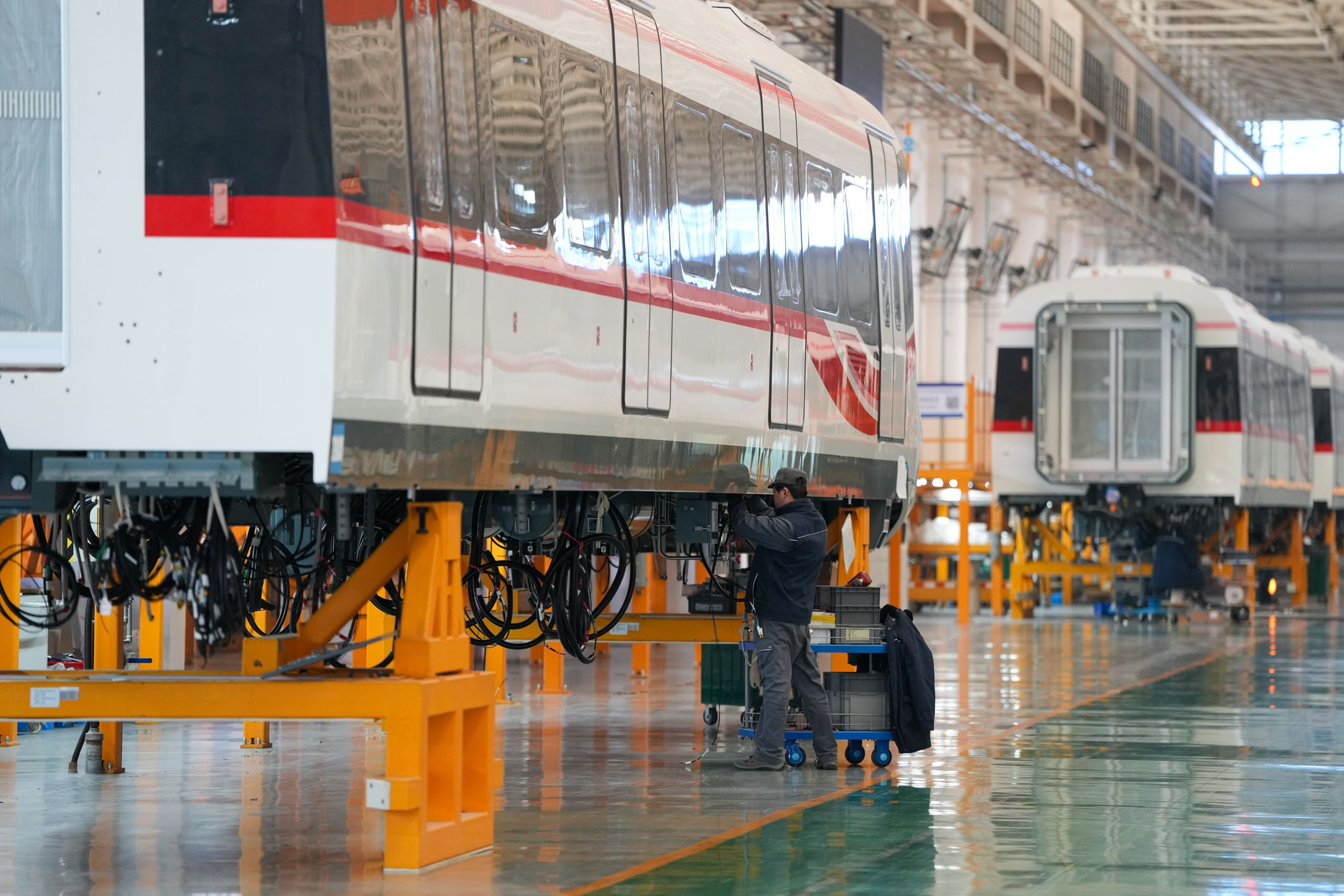 新春伊始,在北京市基础设施投资有限公司旗下京投装备河北京车智能制造基地,各生产车间恢复了往日忙碌景象,为北京市地铁线路准备的地铁列车正在有序生产和测试中。据介绍,河北京车为北京地铁13号线生产的44辆新车中,40辆已经完成调试。2025年,河北京车计划生产100余辆北京地铁22号线列车,目前生产正在有序进行。
