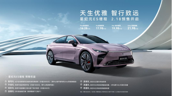 星纪元ES增程版车型日前正式开启预售,共推出4款版型,官方预售价16.28万元至21.98万元。