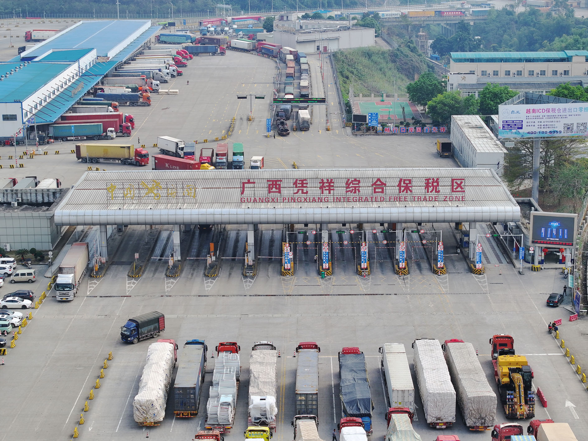 这是3月1日拍摄的广西凭祥综合保税区(无人机照片)。随着中越经贸合作日益紧密,中越双边贸易呈现出良好发展态势,主要边境口岸一派繁忙景象。
