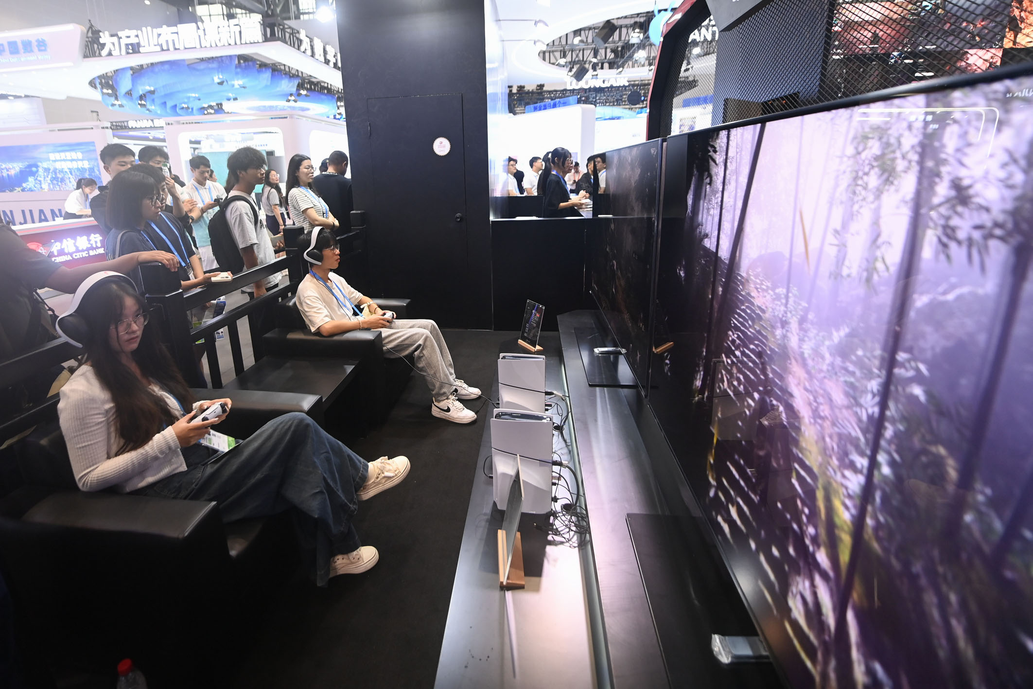 观众体验国内首款3A游戏《黑神话:悟空》。 记者 黄宗治 摄