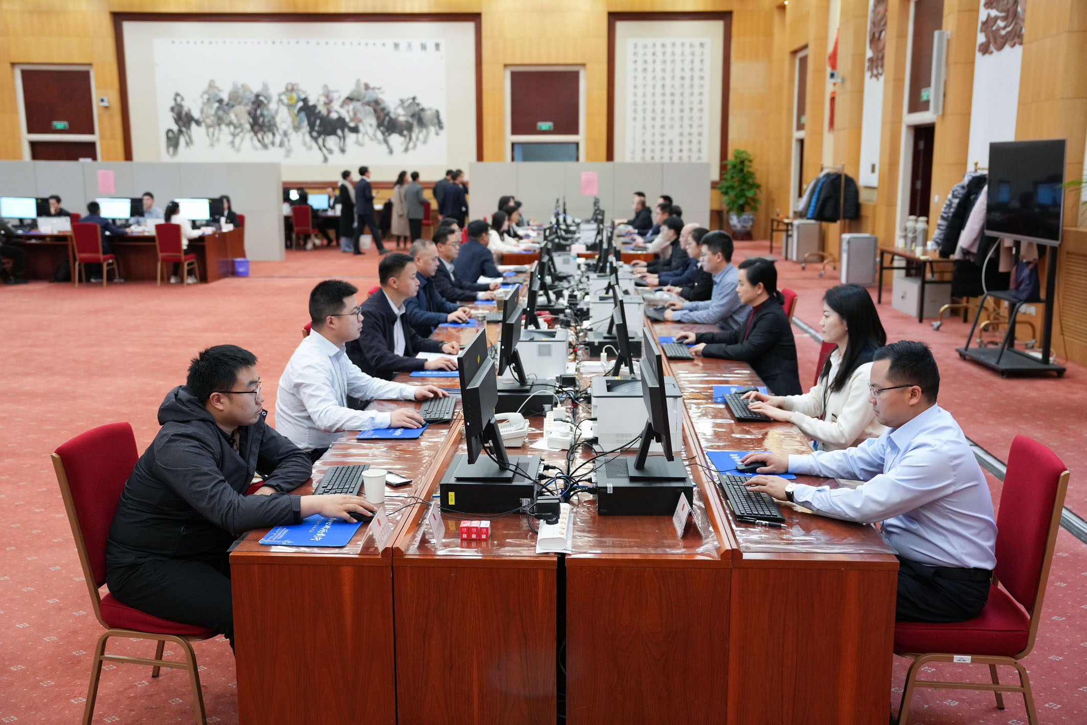 3月9日,十四届全国人大三次会议秘书处工作人员在认真工作。记者9日从十四届全国人大三次会议秘书处获悉,到大会主席团决定的代表提出议案截止时间3月8日12时,大会秘书处共收到代表提出的议案269件。此外,大会秘书处目前已收到代表建议8000余件。