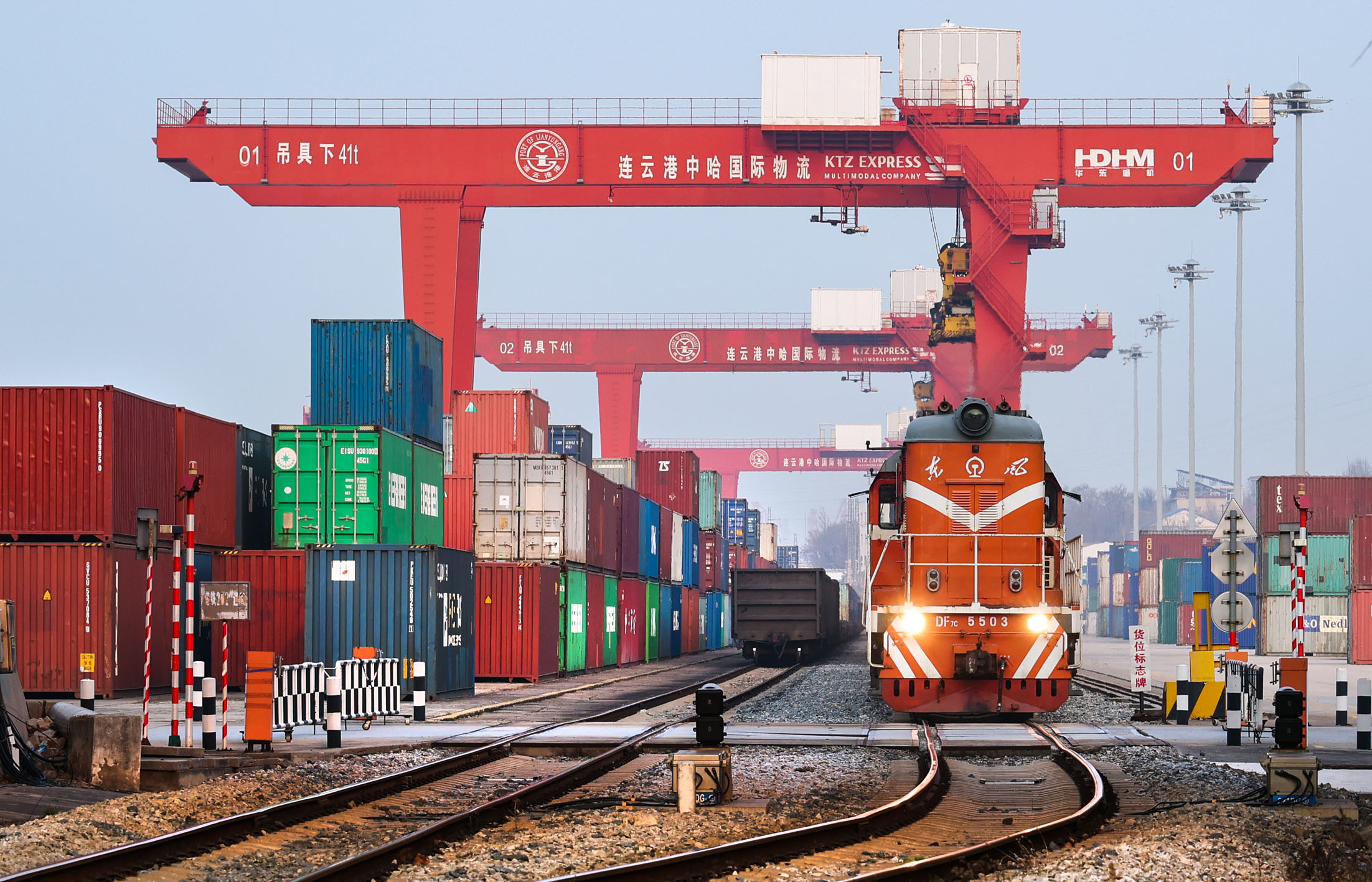 今年以来,中哈(连云港)物流合作基地积极加强国际货源组织,创新“班列+产业+贸易”的服务业态,中欧班列保持平稳增长态势。今年前两个月中欧班列累计到发176列,同比增长22.9%。图为一列满载二手车、汽车零配件的中欧班列从中哈(连云港)物流合作基地出发。
