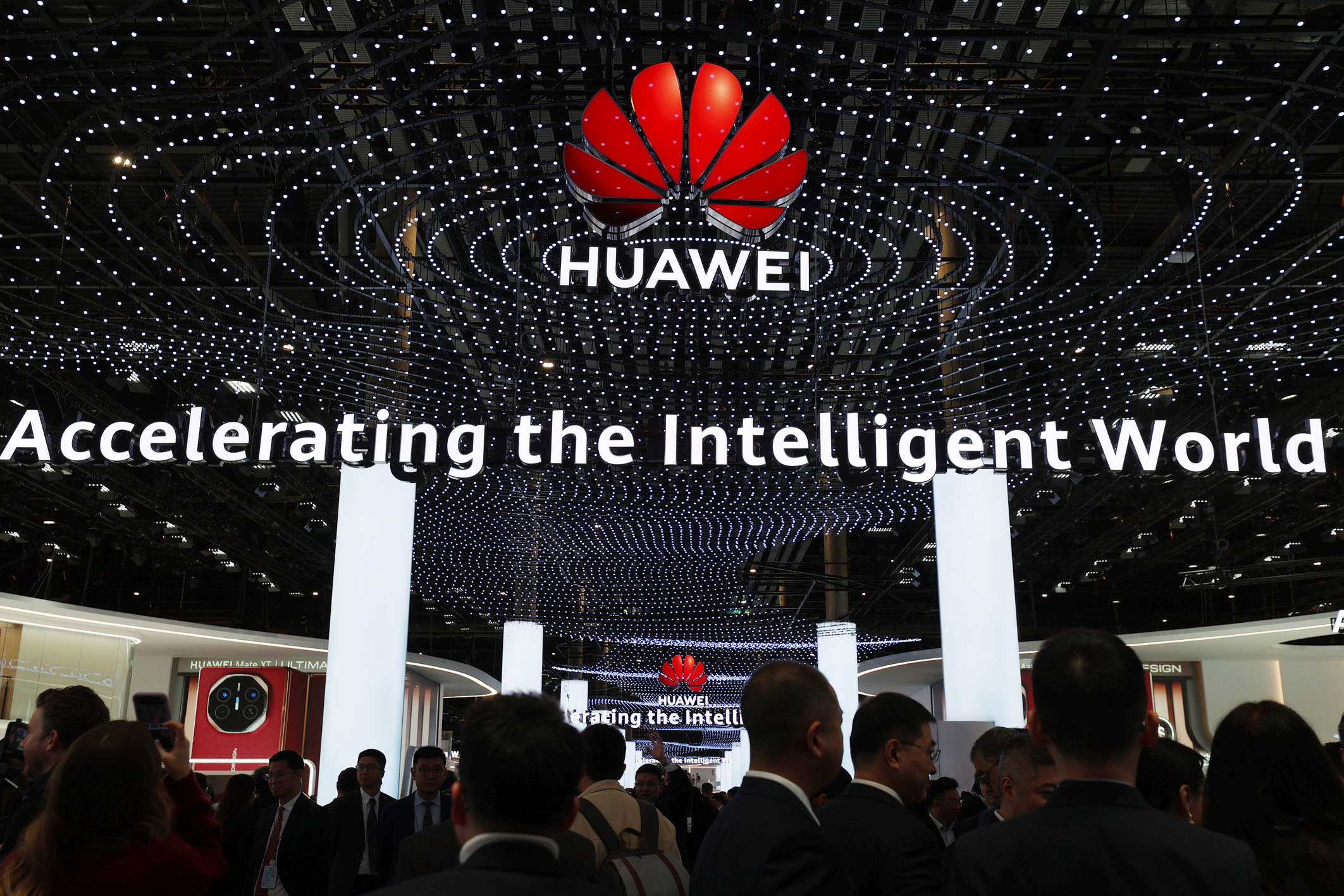 图为2025年世界移动通信大会上,人们在参观华为展区。 记者 赵丁喆 摄