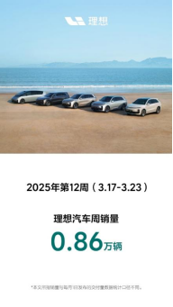 3月25日,理想汽车在微博发布2025年第12周理想汽车销量数据。