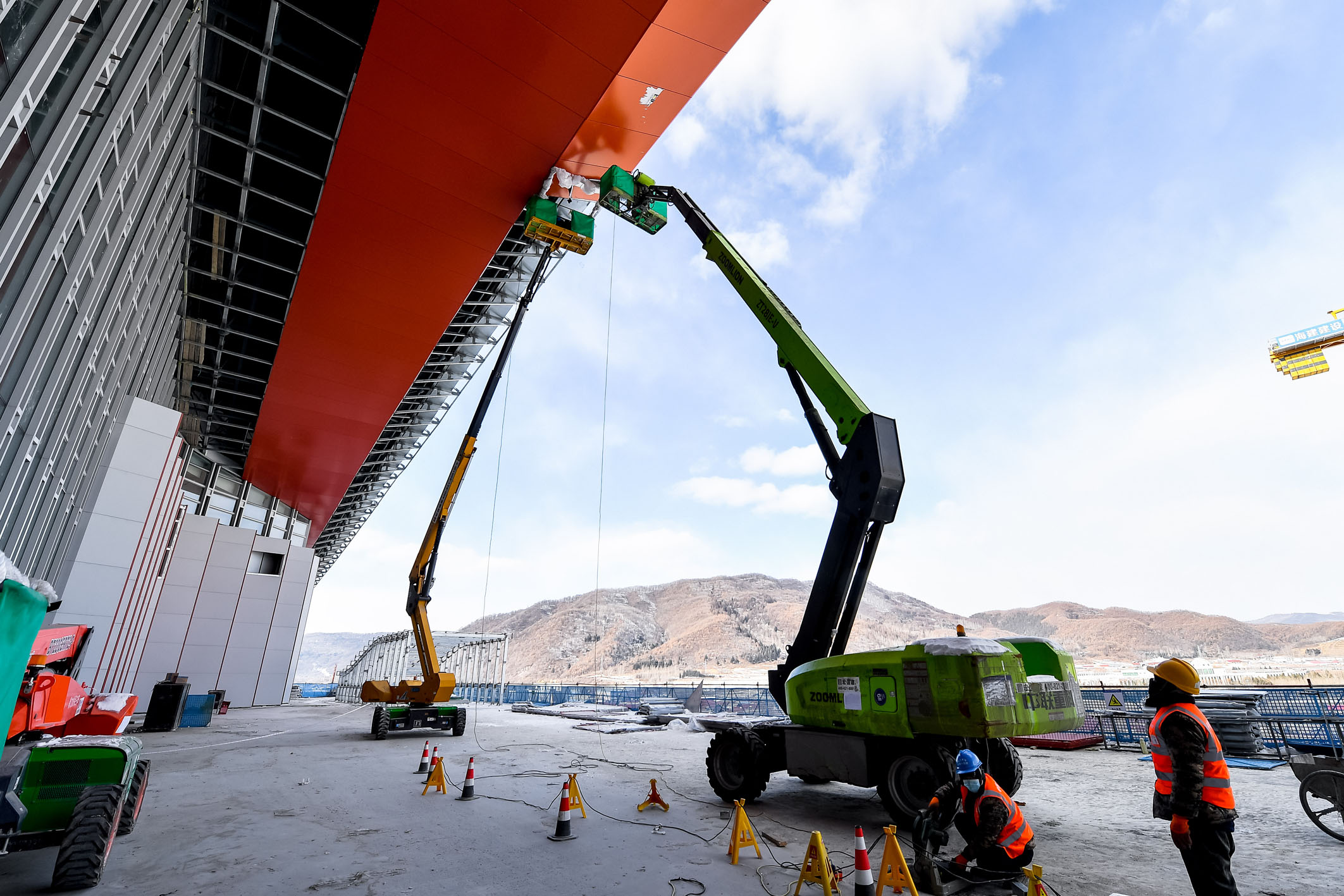 沈白高铁是国家中长期铁路网中东北东部快速铁路通道的重要组成部分,计划今年通车运营。建成通车后,高铁动车组列车将直达长白山脚下,北京至长白山的最短运行时间将缩短至4小时内。图为工人在通化站建设现场进行施工作业。 新华社记者 许畅 摄