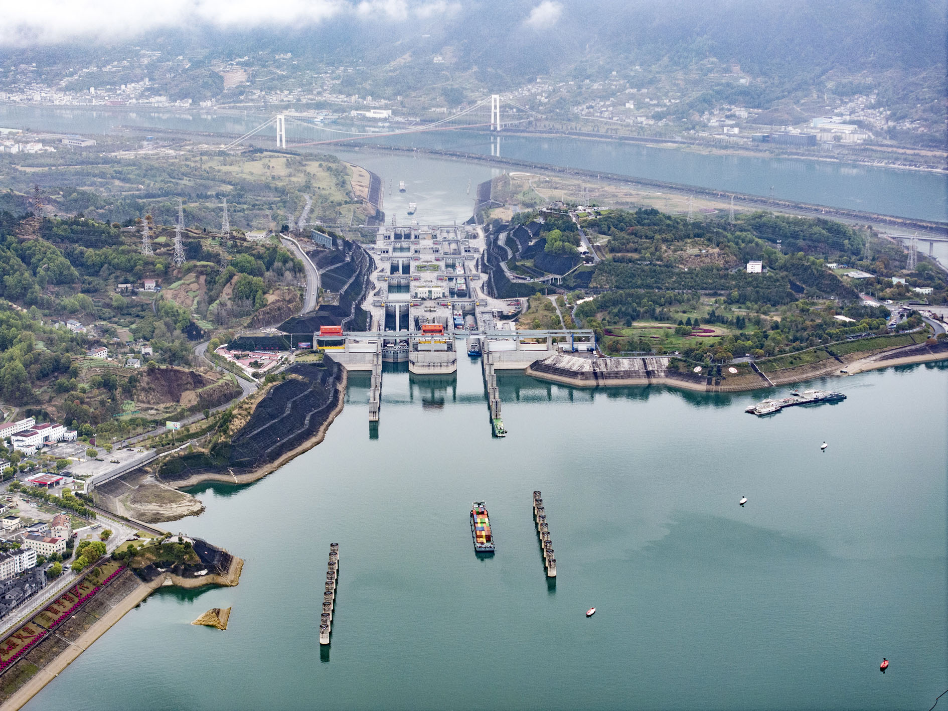 据长江三峡通航管理局统计数据显示,截至2025年3月28日,三峡船闸累计运行21.2万闸次,通过船舶106.5万艘次,过闸货运量达22亿吨。图为在湖北宜昌,船舶有序通过三峡双线五级船闸(无人机照片)。
