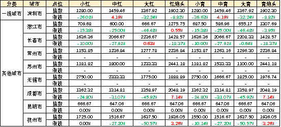 表4我国主要城市龙虾指数变化趋势(单位:点)