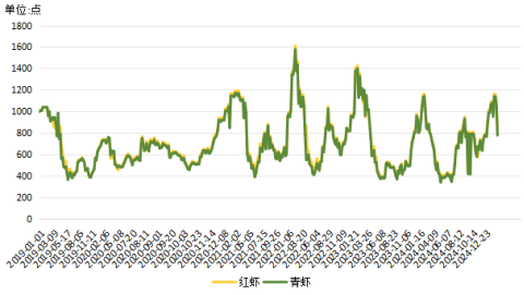 图2 红虾和青虾价格指数走势对比(单位:点)