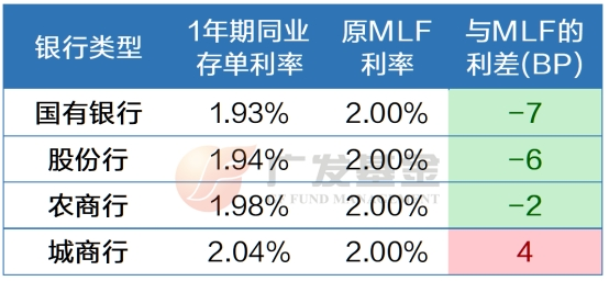 一是降低银行融资成本,缓解净息差压力。在此之前,MLF一般都高于机构(主要指银行)的市场化融资成本(例如同业存单利率)。从下面的表格可以看出,除了城商行以外,其他类型的银行向央行借钱不如向其他同业借钱。