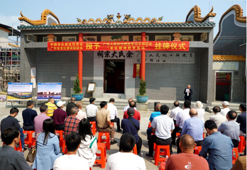 广东人民抗日解放军司令部旧址“老区精神教育基地”挂牌仪式现场。鹤山市委宣传部供图