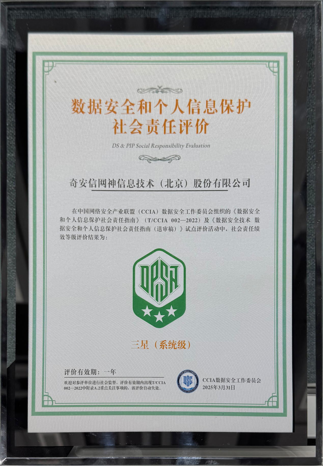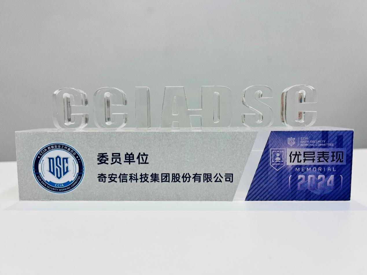 4月2日,CCIA数据安全和个人信息保护专题研讨会暨CCIA数安委2025年度会议在京举行,会上进行了数据安全工作先进表彰。凭借在数据安全领域的领先技术实力和卓越社会责任实践,奇安信集团获评CCIA数据安全和个人信息保护社会责任试点评价“三星”级单位。同时,奇安信还因在2024年度对CCIA数安委工作的大力支持,获“优异表现奖”。