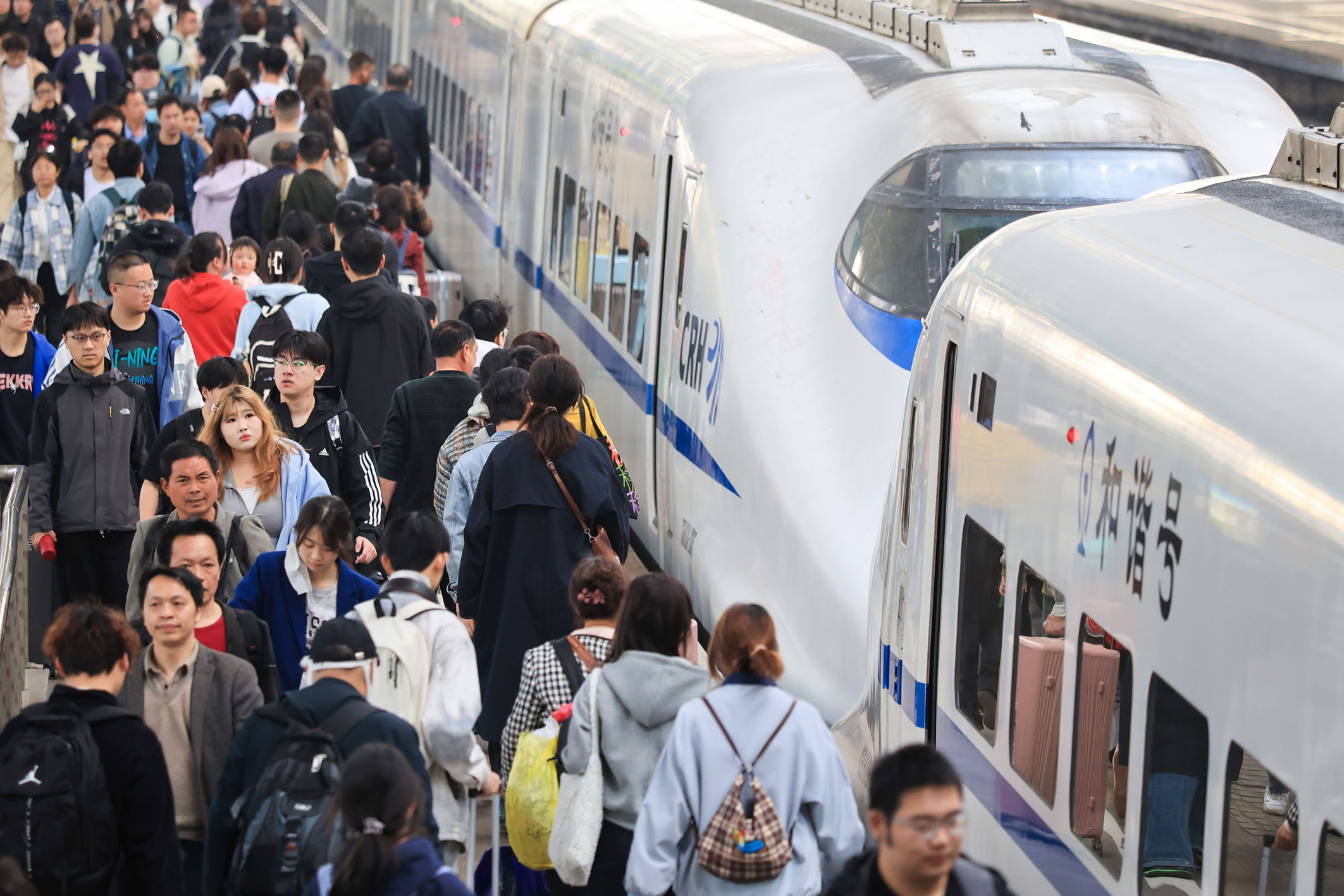 4月6日,旅客在南京火车站乘车出行。记者4月7日从交通运输部获悉,4月4日至6日(清明节假期期间),全社会跨区域人员流动量为79782.7万人次,日均26594.2万人次,比2024年同期增长7.8%。