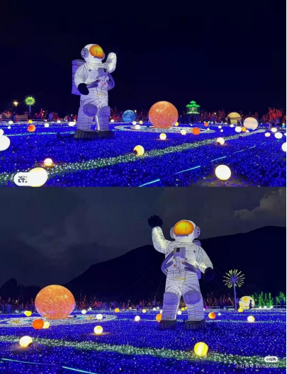 同时,本次嘉年华还特别设置了月球灯光展。以月球为主题,运用灯光、投影、装置艺术等多种技术手段打造的光影展览将现场装扮得如梦似幻。星光隧道、星耀太阳系、星虹月半弯等多个打卡点更是成为游客们争相拍照留念的热门地点。