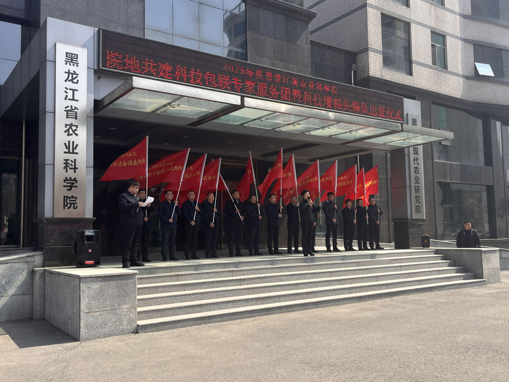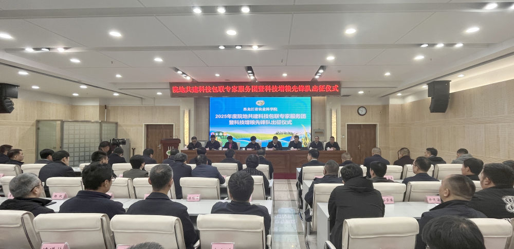 4月8日,黑龙江省农业科学院2025年度院地共建科技包联专家服务团暨科技增粮先锋队出征仪式在哈尔滨举行。会议全面部署新一年农业科技攻坚任务,通过构建"专家包联到县、技术服务到田、成果转化到户"的科技包联体系,集成推广"百项技术、千个基地、万名人才"的增粮示范模式,锚定全省“千万吨粮食增产计划”目标,形成“科技包联全覆盖、增粮示范再升级”的院地合作格局,为筑牢国家粮食安全“压舱石”提供强有力的科技支撑。