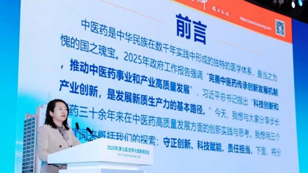 赵菁在演讲中表示,中医药作为中华民族数千年实践积累的医学瑰宝,正迎来“政策+科技”双重驱动的黄金发展期。步长制药始终坚持以科技创新为核心引擎,推动传统中医药与现代技术深度融合,助力产业升级与国际竞争力突破。