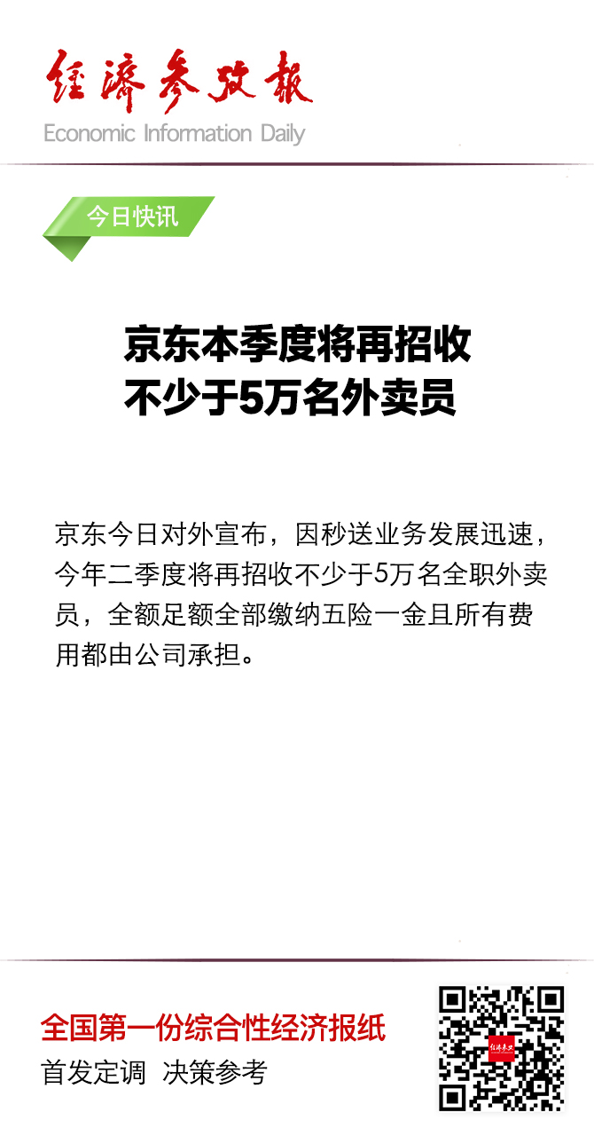 因秒送业务发展迅速,京东今年二季度将再招收不少于5万名全职外卖员,全额足额全部缴纳五险一金且所有费用都由公司承担。京东称“不打口水战,坚持做实事”。4月15日,京东品质外卖订单量将超过500万单,因为都是品质堂食餐厅的外卖,GMV比“幽灵外卖”1000万单还大。