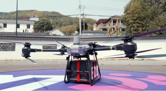 “嗡嗡嗡……”一架物流无人机飞跃浙江桐庐山区,降落在横村镇的村落,为老人送来刚出炉的热腾腾饭菜。