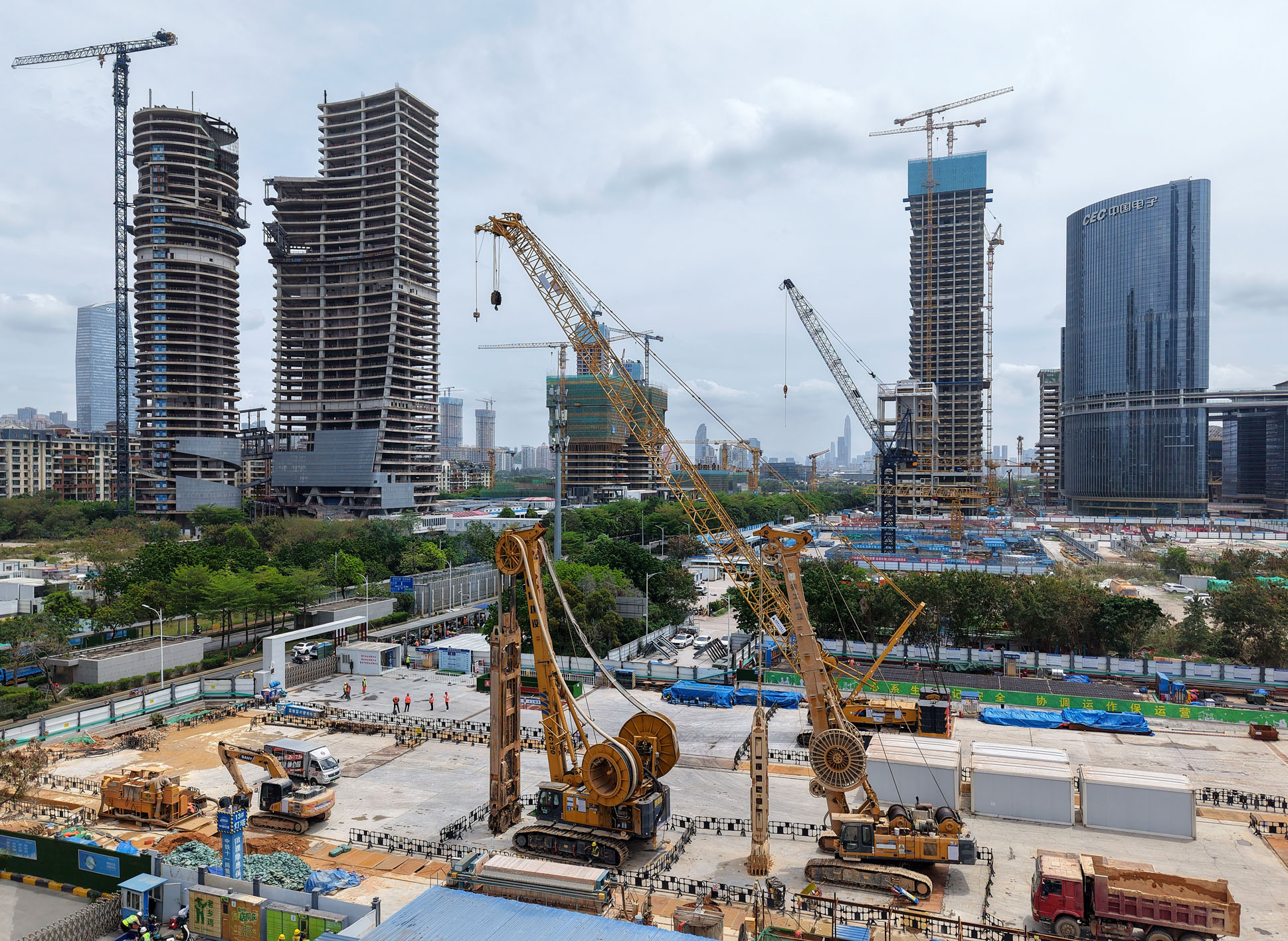 图为4月17日拍摄的红树湾南站主体围护结构建设现场(无人机照片)。