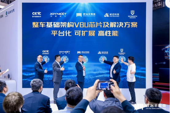 在来自中国电动汽车百人会、主机厂、Tier1及合作伙伴多位嘉宾的见证下,欧冶半导体联合均联智行、诚迈科技、创维汽车与普华基础软件等5家合作伙伴,一同启动了整车基础架构VBU芯片及解决方案的发布仪式。