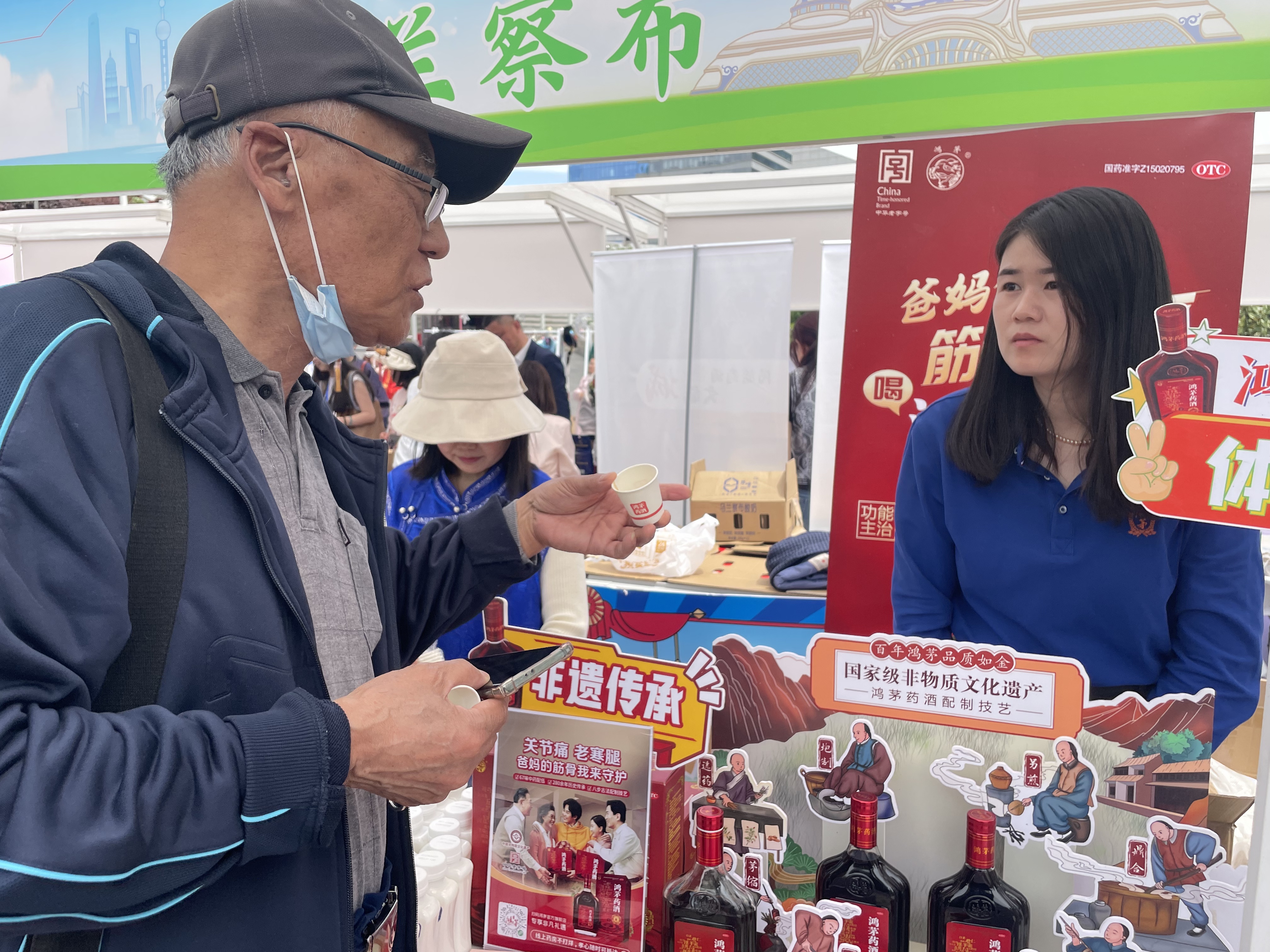 鸿茅药酒展位前观众热情互动