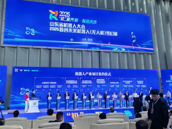4月26日,山东省机器人大会暨2025第一届中国(邹城)智创未来机器人(无人机)梦幻展,在山东省邹城市国际会展中心举行。这场全球智能装备领域的行业大会,不仅展示了工业机器人、服务机器人、无人机等前沿产品的创新成果,更以高规格的签约仪式奏响了山东人工智能产业协同发展的新乐章。