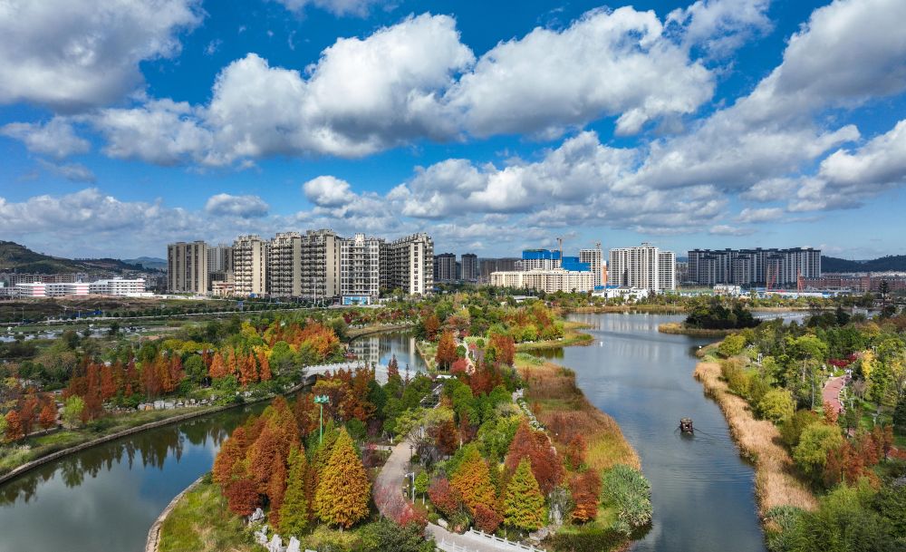 2024年11月12日拍摄的曲靖市沾益区西河公园(无人机照片)。新华社发(孙文来摄)