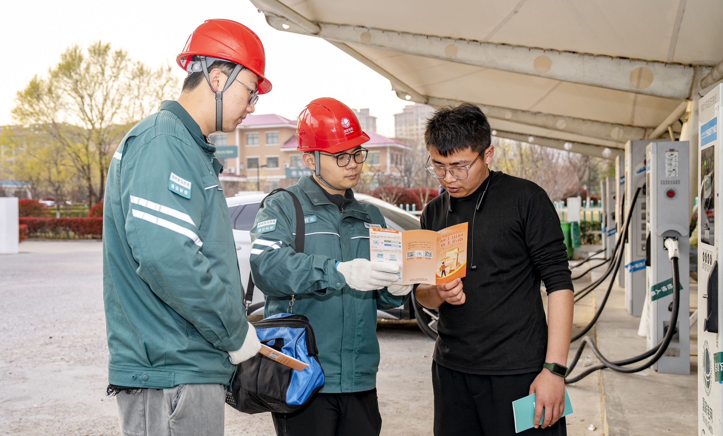 五一假期临近,国网青岛市黄岛区供电公司主动对接城市绿色出行需求,对旅游景点等重点场所充电设施开展“体检式”运维,对充电枪、电缆、接地体等进行详细检查,确保广大新能源车主安全充电,为青岛西海岸新区打造低碳交通体系提供坚实电力支撑。图为国网黄岛区供电公司工作人员在灵山湾充电站指导用户安全使用充电设备。