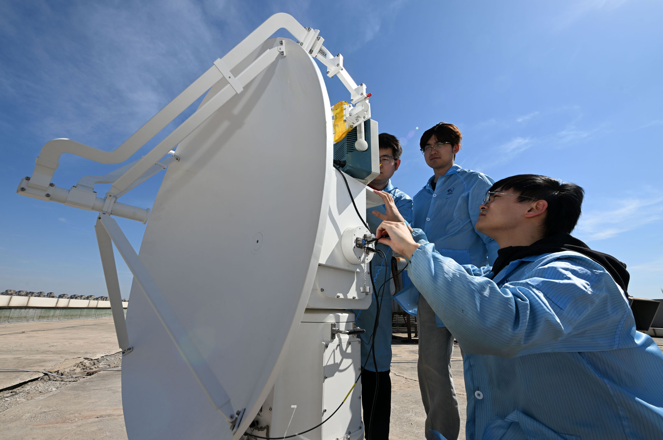天津云遥宇航科技有限公司工作人员在测试一款天气雷达设备。记者 赵子硕 摄
