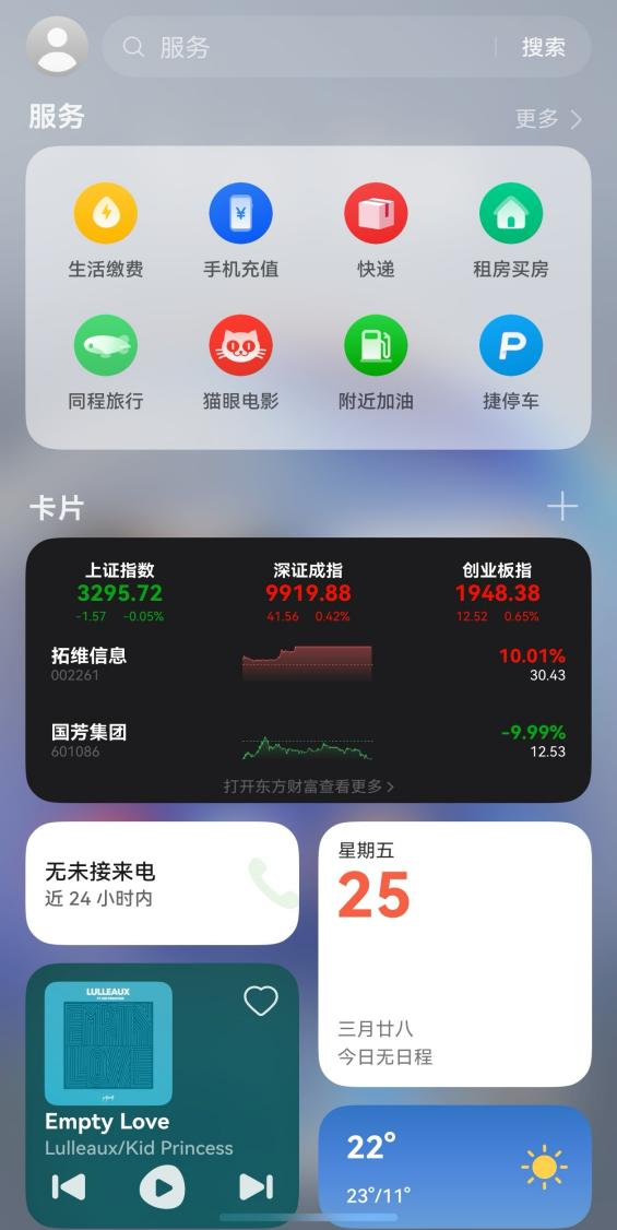 东方财富Lite元服务卡片是首批为鸿蒙5开发的金融类服务卡片,凭借深度适配的技术优势,构建起了“信息可视化”与“服务直达化”的高效交互体系。用户只需在华为手机桌面右滑进入负一屏,上证指数、深证指数和创业板指等关键市场数据便会在卡片上实时呈现,市场动态尽在掌握。用户点击卡片即可一键直达东方财富Lite元服务,快速获取实时行情、自选股、资讯等核心服务,还能通过账号关联享受更智能、个性化的投资体验。