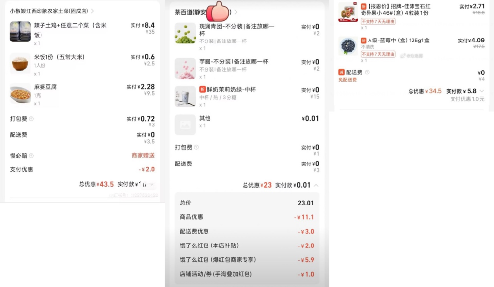 观察社交媒体平台相关信息可发现,淘宝闪购上线两日内,大量各地消费者进行了在线晒单,诸如“0.1元喝上了奶茶”“2元吃了一顿饭”“5元吃蓝莓奇异果”等。在淘宝官方微博评论区,各地消费者要求在其所在城市“尽快上线”的评论始终在刷屏。