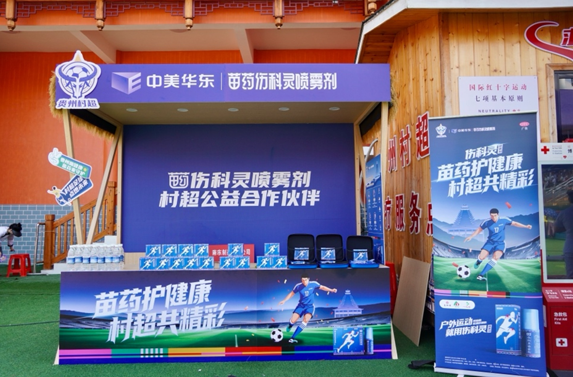 作为2025年贵州村超公益合作伙伴,中美华东苗药伤科灵将为全年赛事保驾护航,为全赛季的运动员提供保障用药,还会在村超球场医疗救护站旁设置长期的品牌专区,运用伤科灵喷雾剂迅速为球员们的运动损伤提供快速镇痛、消肿修复等一站式解决方案,让球员们踢球不忧“伤”,也让“苗药护健康”的承诺化作看得见的保障。