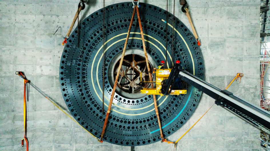 施工人员正在进行叶根安装系统法兰固定作业 (资料照片)