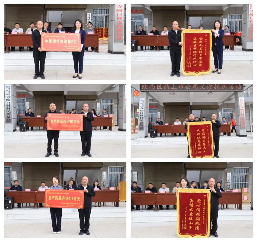 本次活动三家单位联合捐赠价值14.98万元、4417盒的药品及2台医疗设备,医疗设备为陕西上市公司协会捐献的中医智能诊断仪及理疗仪,药品均为盘龙药业、康惠制药自产药品,涵盖痛风、心脑、骨科、感冒、妇科、小儿等多类常用中药产品。