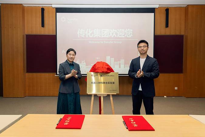 签约仪式后,传化集团副总裁徐迅与浙江人形机器人创新中心总经理熊蓉共同为“机器人材料联合实验室”揭牌,该实验室将整合双方优势资源,专注于新型材料的研发与创新,为人形机器人性能提升和成本降低提供技术支撑。