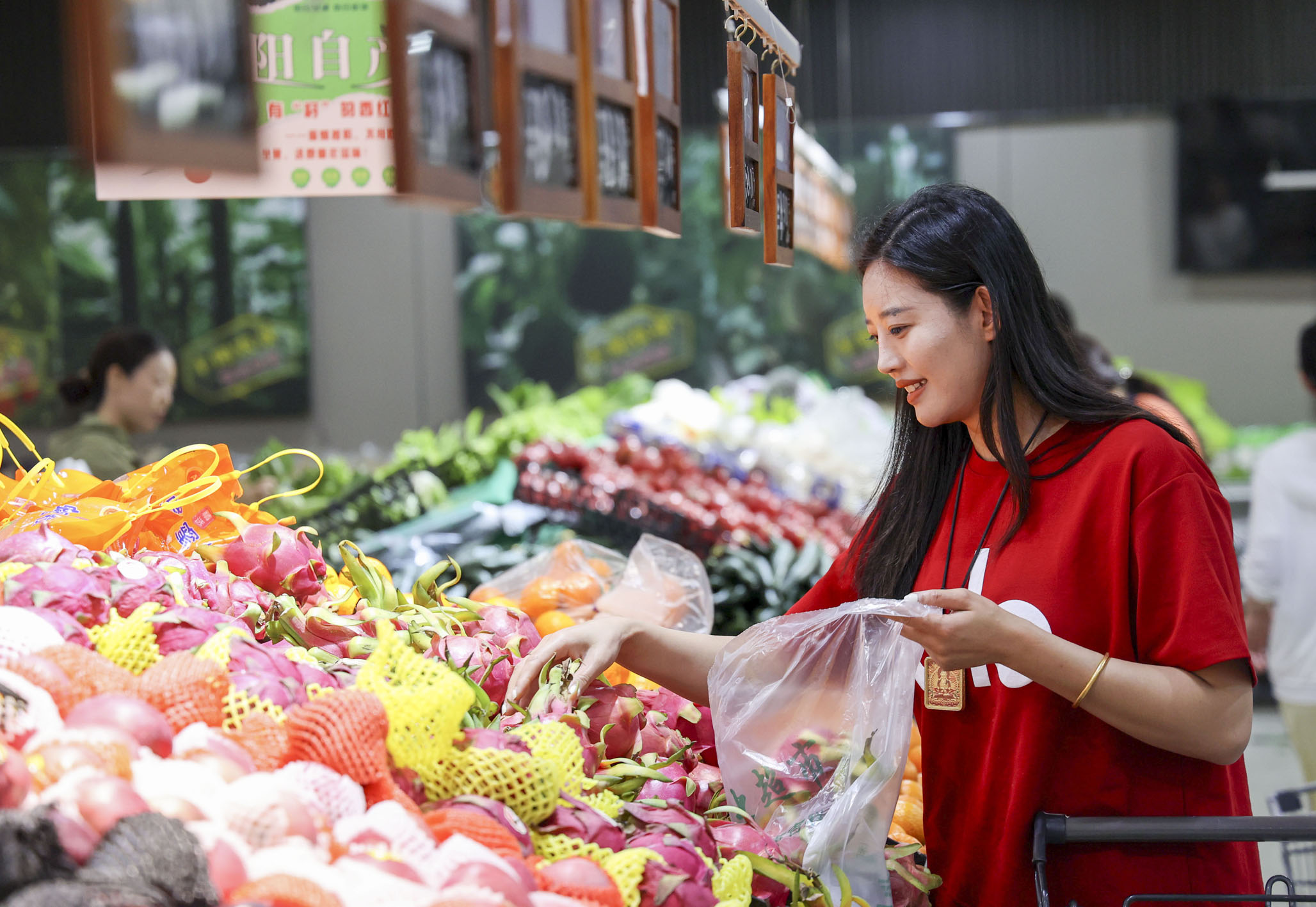 国家统计局日前发布的数据显示,4月份,受国际油价下行影响,全国居民消费价格指数(CPI)同比下降0.1%;扣除食品和能源价格的核心CPI上涨0.5%,涨幅保持稳定。图为消费者在山东省滨州市阳信县一家超市选购水果。
