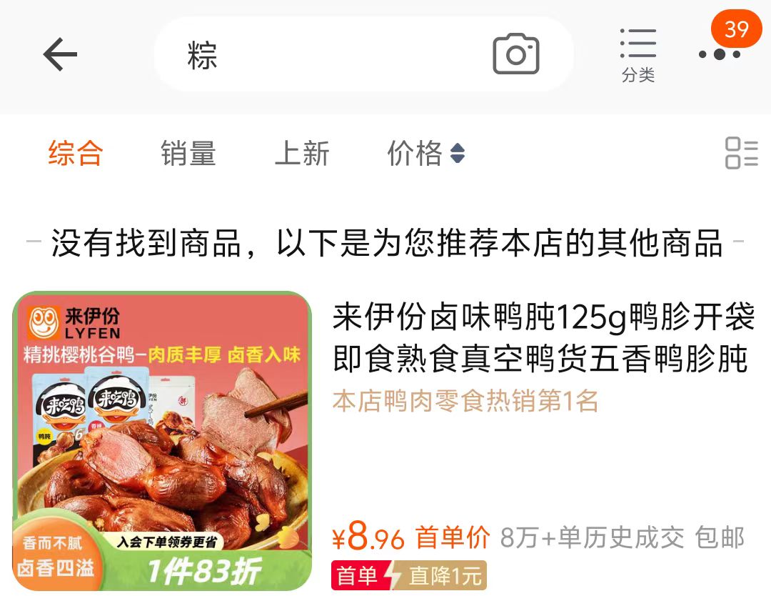 △图片来源:记者在来伊份天猫旗舰店检索“粽”的截图
