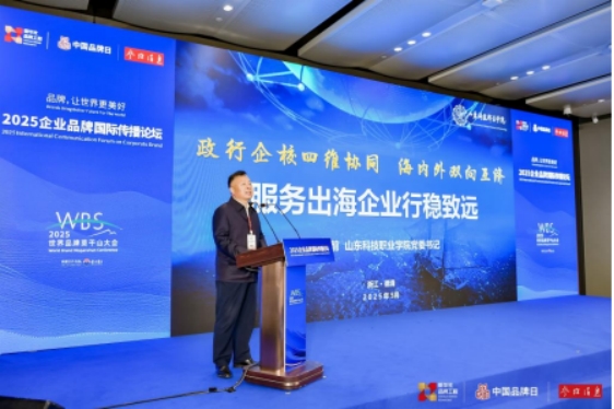 2025世界品牌莫干山大会5月10日在浙江德清开幕。本次大会以“品牌,让世界更美好”为主题,汇聚相关政府部门、中外企业、高等院校等深入探讨品牌建设,发出全球品牌声音。作为大会系列活动之一,由参考消息报社主办的“企业品牌国际传播论坛”同期开幕,共议新形势下企业国际传播与品牌建设路径,山东科技职业学院获“助力企业出海职教先锋(2024)”称号,山东科技职业学院党委书记郑德前在论坛上分享学校助力企业出海实践经验。