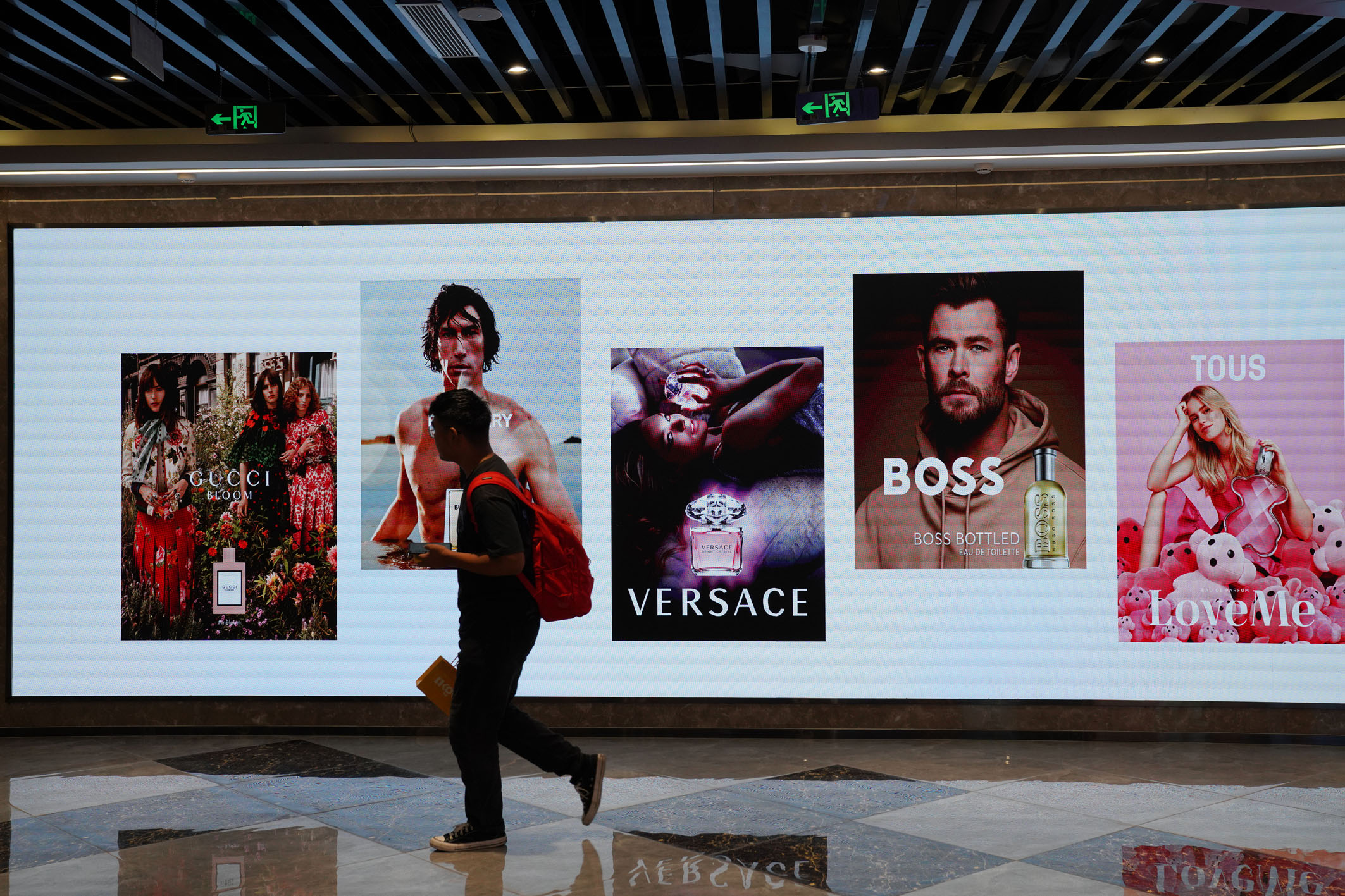 一位行人从广告牌前走过。(资料照片)