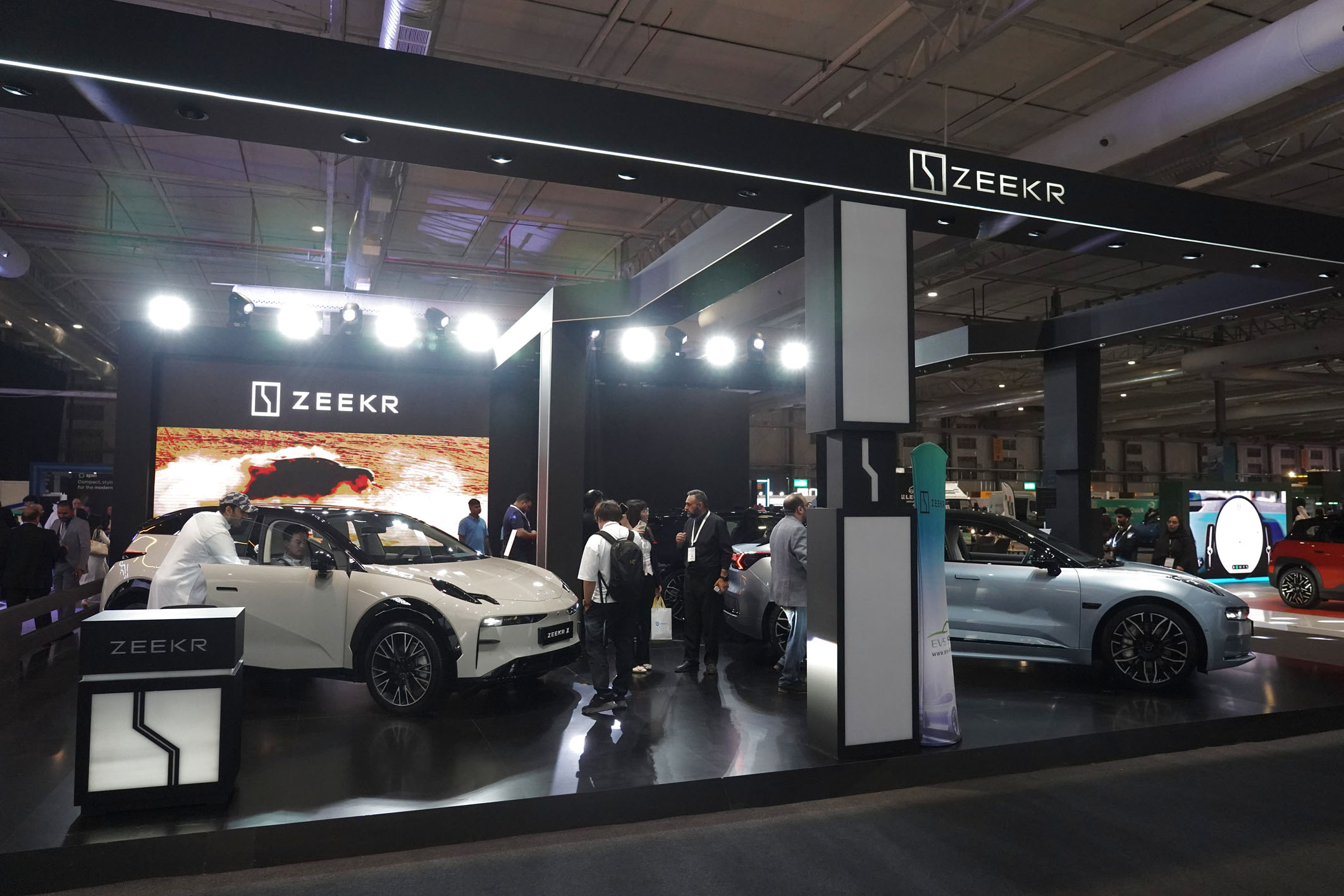 近日,2025沙特新能源车辆及储能展在利雅得举办,多个中国汽车品牌参展。图为在沙特阿拉伯利雅得举办的展会上,观众参观极氪汽车展区。