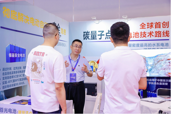 尊光公司携自主研发的高能量密度水系镍基安全电池亮相第十七届深圳国际电池技术交流会/展览会,其全球首创的镍基安全电池完全具有自主知识产权,已获得权威检测机构检验,该产品已成为全球首家实现量产的高能量密度水系电池。近年来,该公司凭借全球首创的颠覆性的技术创新与卓越性能,为储能、电动自行车、移动充电车、应急电源、节能电梯等多个领域注入了新动力。尊光公司全球首创的镍基安全电池采用自主研发的不可燃的水系量子点电解液和定向生长碳纳米管三维负极材料,能解决电池燃烧爆炸风险问题,同时提高了电化学窗口电压和能量密度,用我国原创技术路线实现了集电池安全、大功率充放电、宽温域使用、长寿命循环为一体的重大科研突破。