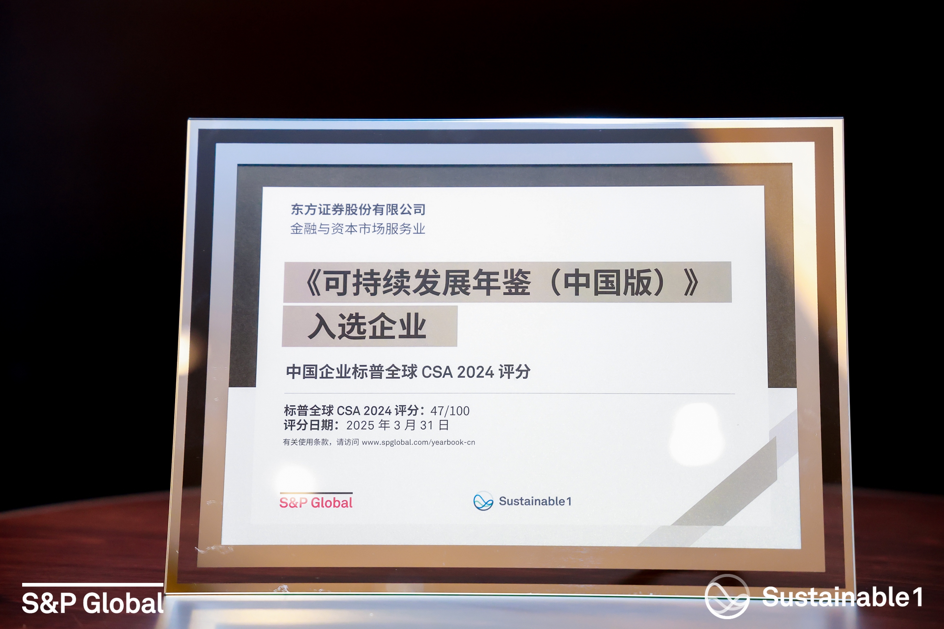 日前,国际评级机构标普全球(S&P Global)正式发布《可持续发展年鉴(中国版)2025》,东方证券连续两年成功入选,也是2025年度唯一入选的证券公司。