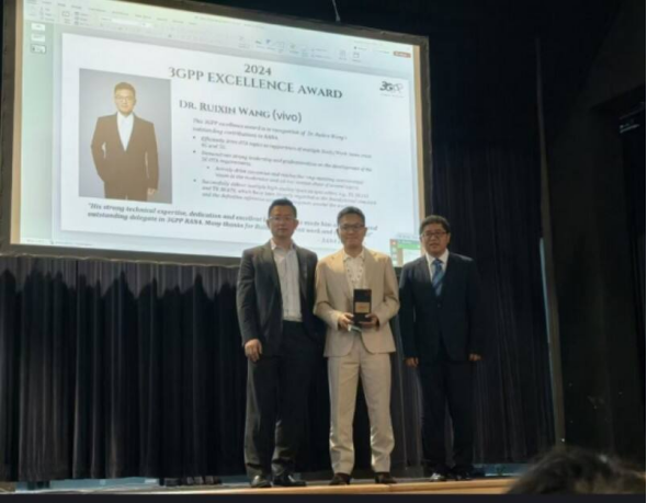 同时,王瑞鑫不仅在个人技术领域努力付出,作为3GPP RAN4 工作组的vivo首席代表,他领导vivo RAN4团队参与多个领域的技术讨论并积极推动国际标准制定。